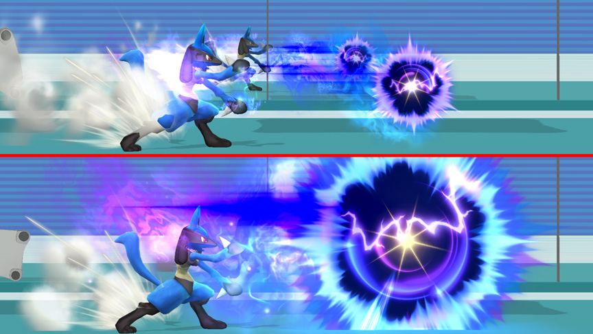 A fully charged Aura Sphere fires in a straight line, while an uncharged Aura Sphere travels forward in an wavy, up-and-down motion. Lucario’s aura now affects Extremespeed. The greater the aura, the greater the distance he’ll travel. Anyone who attacks Lucario while he’s doing Double Team will receive a counterattack courtesy of his flying foot.