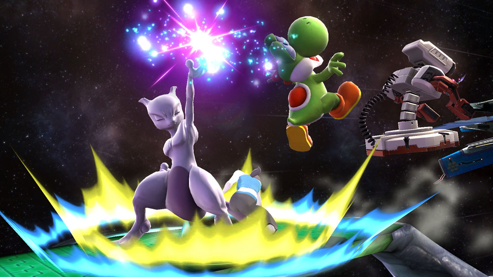 Press the Special Attack Button once to charge up the Shadow Ball, then press again to toss it ahead. It can also be stored.Confusion acts as a grabbing attack and a reflector. Reflected projectiles deal 1.4% their initial damage to whoever they hit.Mewtwo dazes foes with Disable only if they make eye contact upon getting hit. The higher their damage, the longer they'll be dazed.For his Final Smash, he Mega Evolves into Mega Mewtwo Y and unleashes Psystrike at foes in front of him.