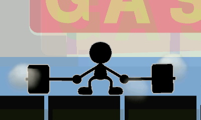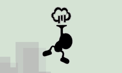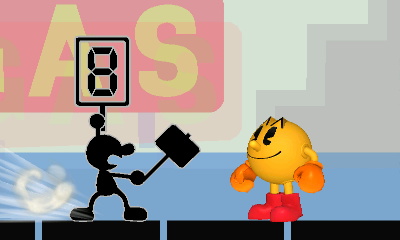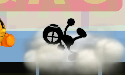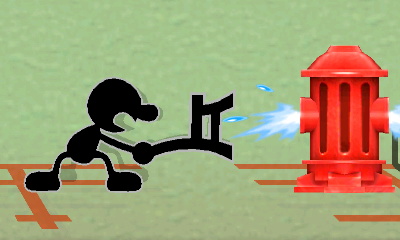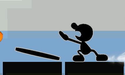 Mr. Game & Watch's pan in his Chef move deals fire damage.The effects of Judging opponents change depending on which random number is displayed on the card.1 deals 2% damage on an opponent but with zero knockback. Also deals 12% recoil damage on Mr. Game & Watch.2 deals 4% damage with minimal knockback. Has a 20% chance of tripping an opponent.3 deals 6% damage and knocks opponents towards Mr. Game & Watch. Also damages shields a good deal.4 deals 8% damage and slashes opponents diagonally upwards.5 deals 12% damage with four electrical charges.6 deals 12% damage, setting foes ablaze and semi-spiking those in the air.7 deals 14% damage and produces an apple on the ground if executed on the ground.8 deals 9% damage and briefly encases foes in ice.9 deals 32% damage and ginormous horizontal knockback, like the Home-Run Bat. KO's at single-digit percentages.Oil Panic absorbs three projectiles that can be thrown out as a deadly puddle of oil. More powerful projectiles will fill it up in one go.He transforms into an Octopus for his Final Smash. Control it with Control Stick, and attack with its tentacles with the Attack Button.