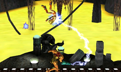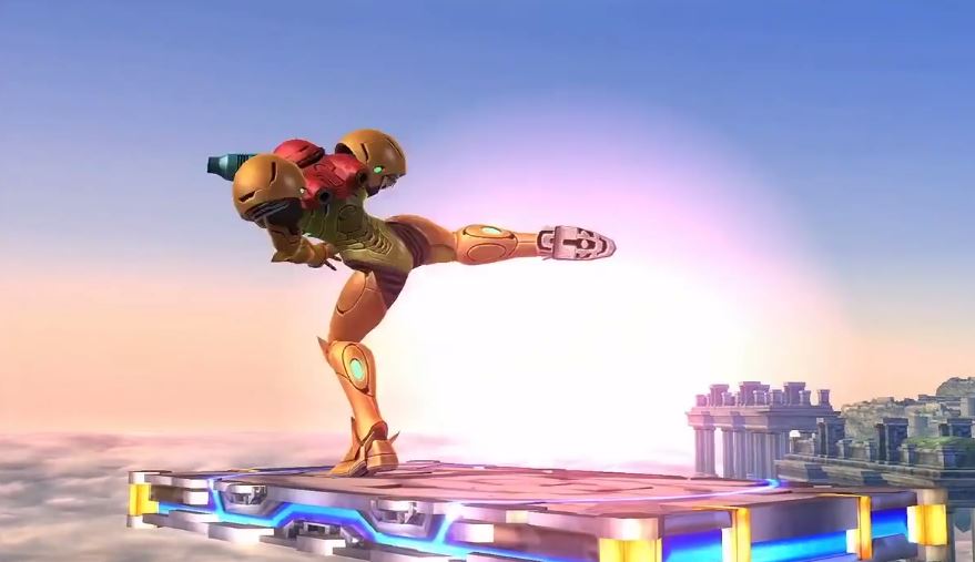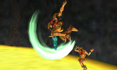 Tap the Control Stick left or right while pressing the Special Attack Button to shoot a more powerful, straight-flying Super Missile. Use the Grapple Beam to grab opponents on the ground or damage opponents from a distance in the air. It also tethers ledges. Her Side Smash has a longer hitbox thanks to the brief blast fired at the end of her Arm Cannon.