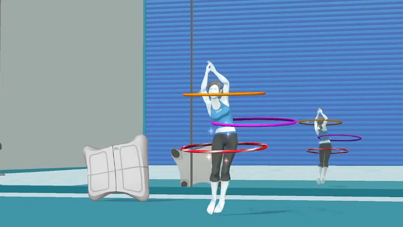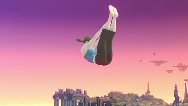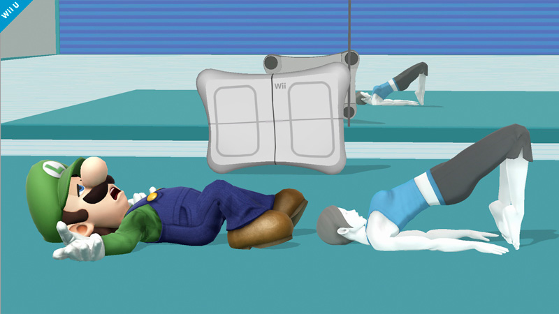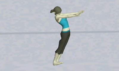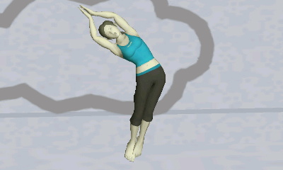 Some of the Wii Fit Trainer's attacks hits in front and behind her. Also, the third hit of her jab buries opponents. Successfully Deep Breathing and a shooting fully charged Sun Salutation can both minimally heal the Wii Fit Trainer. The Soccer Ball used in her Side Special remains on the battlefield and is usable by other opponents. You can also play as the male Wii Fit Trainer. They share the same properties and attacks.