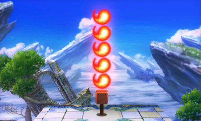 An item based on the object of the same name in the Mario series. With each successful hit it loses one of five of its fireballs, but will retain one when it gets down to only one. It deals the most damage at the base.