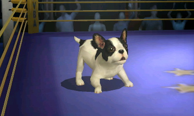 When summoned as an Assist they will appear up close near the camera and obstruct the view by licking and pawing at the screen. This particular dog featured in the game is a French Bulldog.