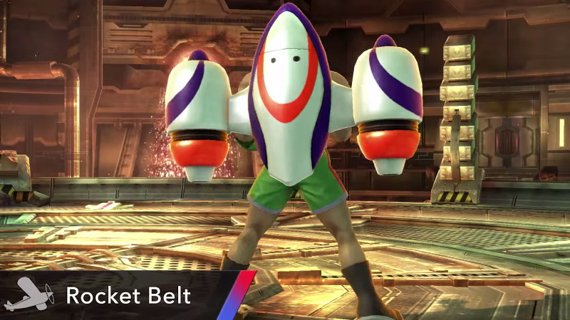 The Rocket Belt grants the player the power of flight (even if they are not Pit)! Whenever the player presses the jump button with the Rocket Belt equipped they will receive a vertical boost.Text by Big Boy Pants