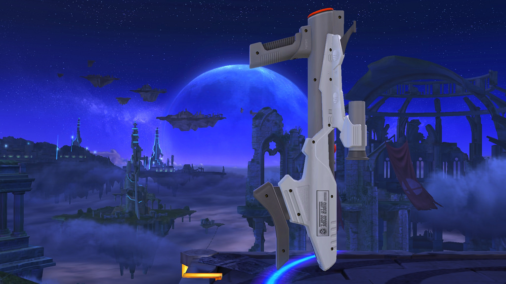 This weapon is a chargeable and it can either fire weak bullets in rapid succession or large and powerful shots at longer intervals. It carries enough firepower for 48 rapid-fire shots, or three fully charged blasts.Text by Big Boy Pants