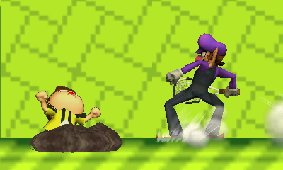 As an Assist Trophy, Waluigi stomps opponents into the ground, then follows up with a kick or a swing of his tennis racket. If you’re near the edge of the stage, he may spike you with his stomps. Needless to say, stay off the ground whenever Waluigi’s around!