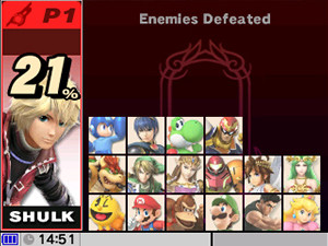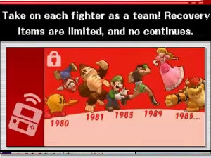 Team up to fight the entire Smash roster! No continues, and a limited number of items only.