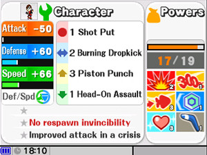 It's not a simple matter of powering up every attribute, though. You can make it tougher for opponents to send you flying but pay for it with slower movement, or you can move more quickly but offset that advantage with weaker attacks. Your character's strength changes with each of the adjustments you make.