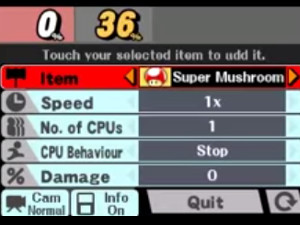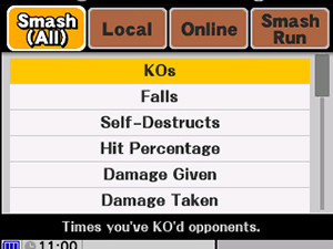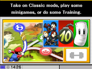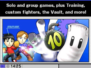 Test your skills in a straight-up Smash! Play against the CPU or people nearby.