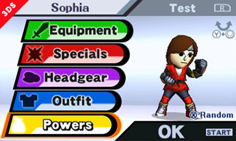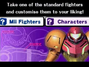 Customize your characters in the Custom section. It sounded better to customize 'characters' instead of 'fighters,' so that's what we went with. There are various ways to customize, but make sure you remember to set up the powers you're bringing with you before playing a round of Smash Run.