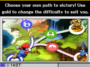 Choose your path and beat your foes to keep moving! Use gold to change the intensity.