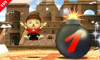 What's up with this bomb? This looks like the stadium for the Home-run Contest, but there's no bat. Once you touch the bomb, it begins to count down. Give it enough damage and launch it at the right time...then once the bomb's countdown hits zero...!!